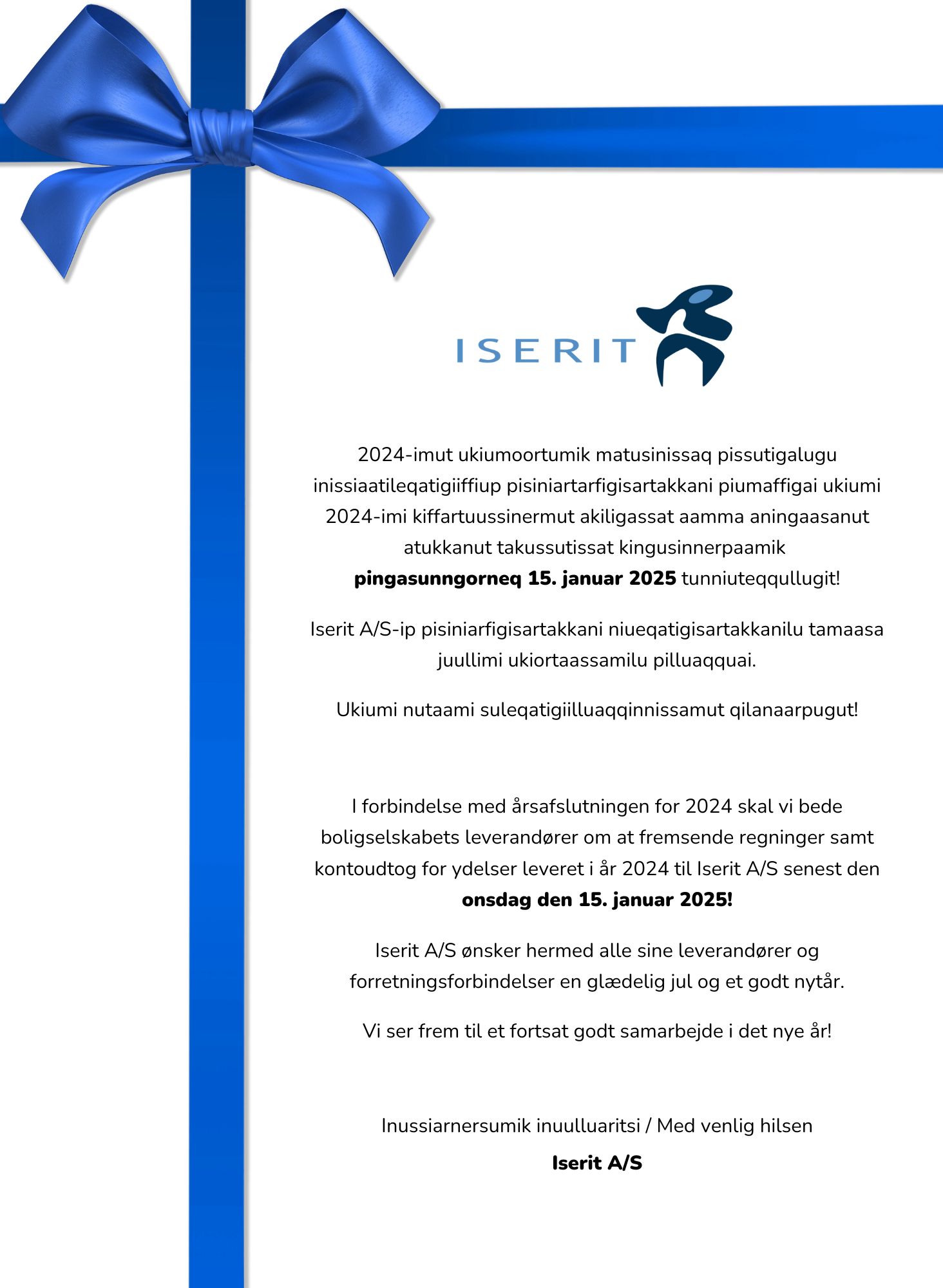Iserit A/S-ip pisiniarfigisartakkani niueqatigisartakkanilu tamaasa juullimi ukiortaassamilu pilluaqquai.